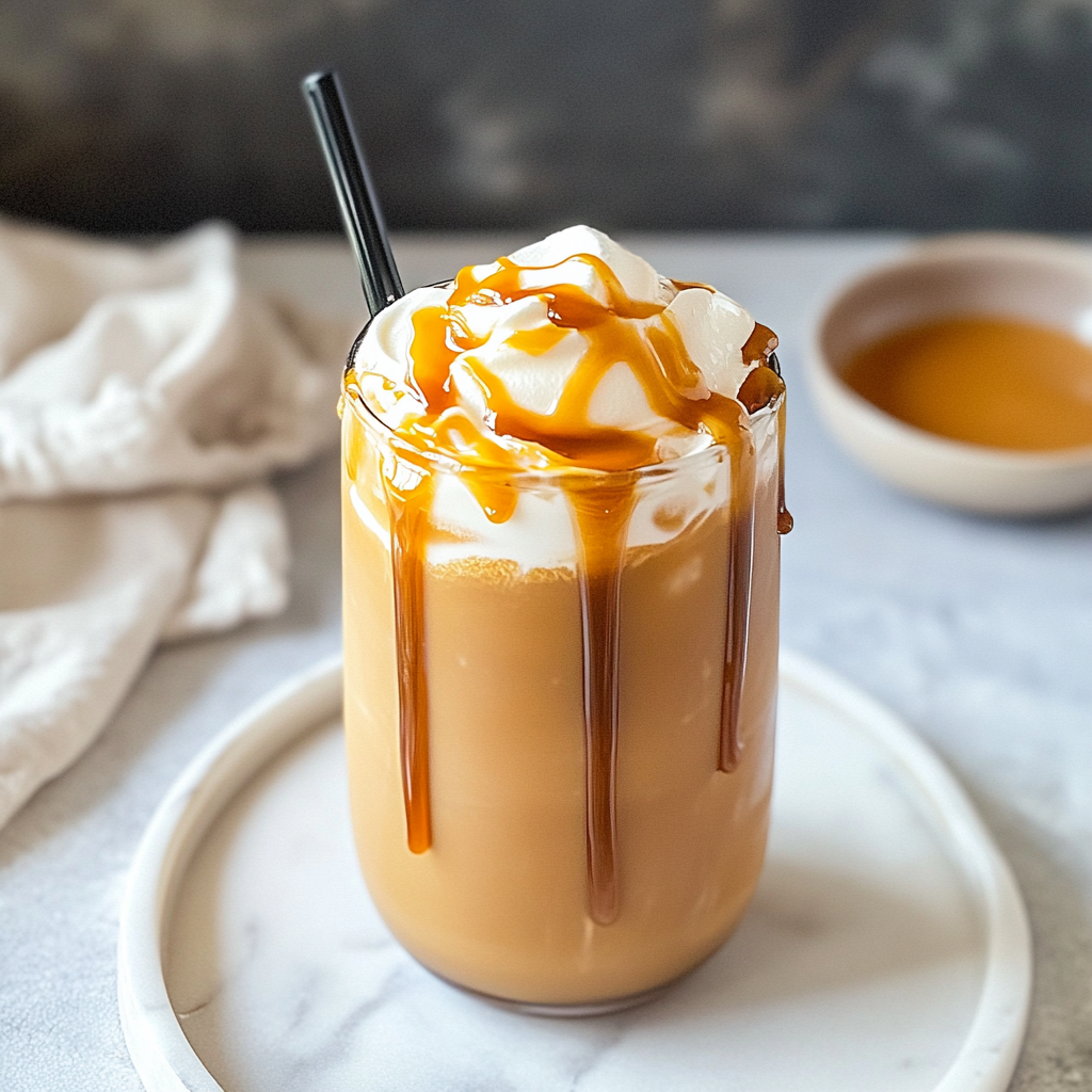 Final Touches: Top off your drink with some whipped cream if you’re feeling indulgent—because why not? Finish with another drizzle of caramel sauce on top like you’re Picasso creating edible art.