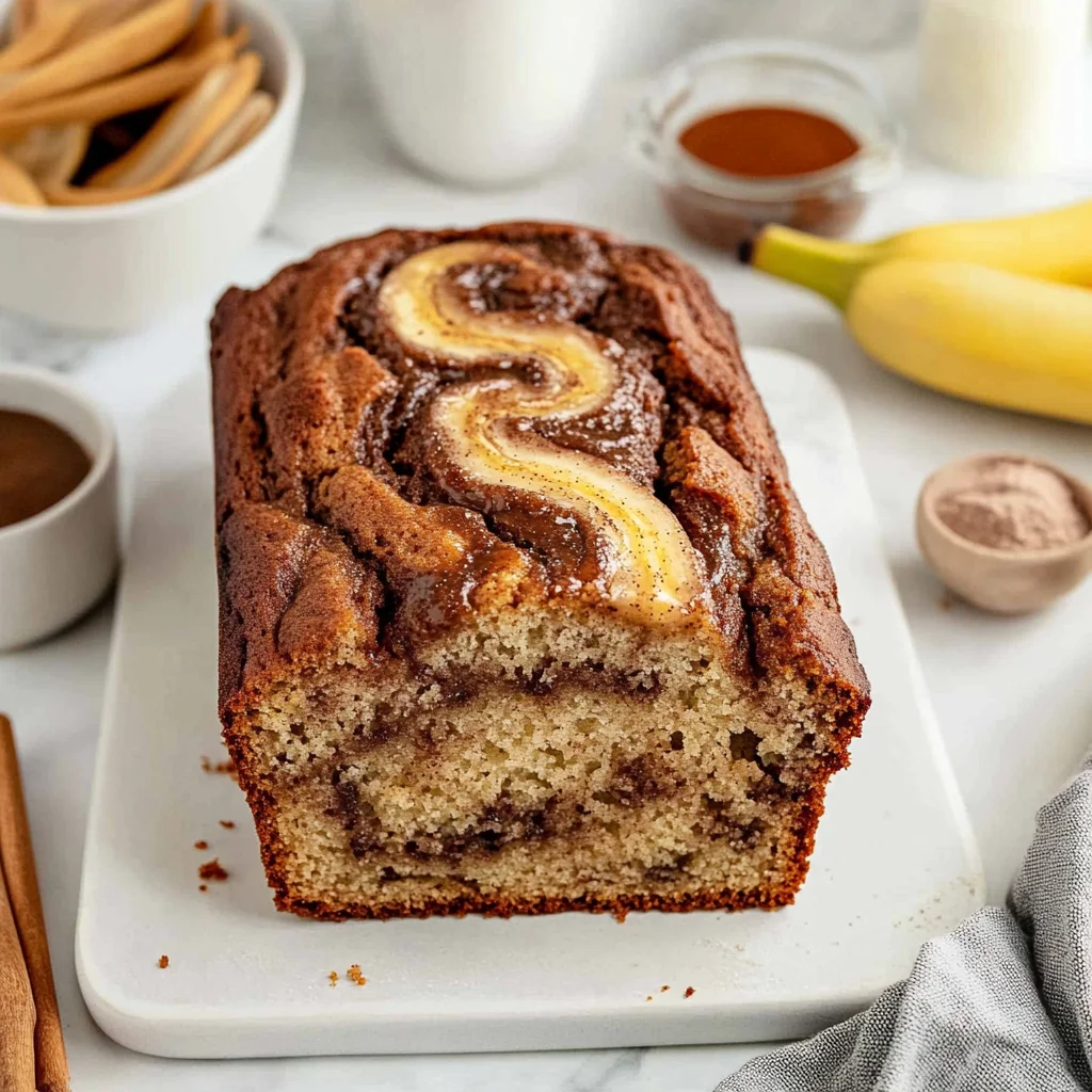 Step 6: Assemble and Bake:Pour half of your banana batter into the prepared loaf pan and spread it evenly. Then sprinkle half of your cinnamon sugar mixture over this layer. Add the remaining batter on top, followed by the rest of the cinnamon sugar mixture sprinkled generously over it all. Using a knife, gently swirl through the layers to create that beautiful marbled effect we love! Bake in your preheated oven for about 55-65 minutes until golden brown; you’ll know it’s ready when a toothpick inserted comes out clean. Let it cool in the pan for about 10 minutes before transferring it to a wire rack—your kitchen will smell heavenly!