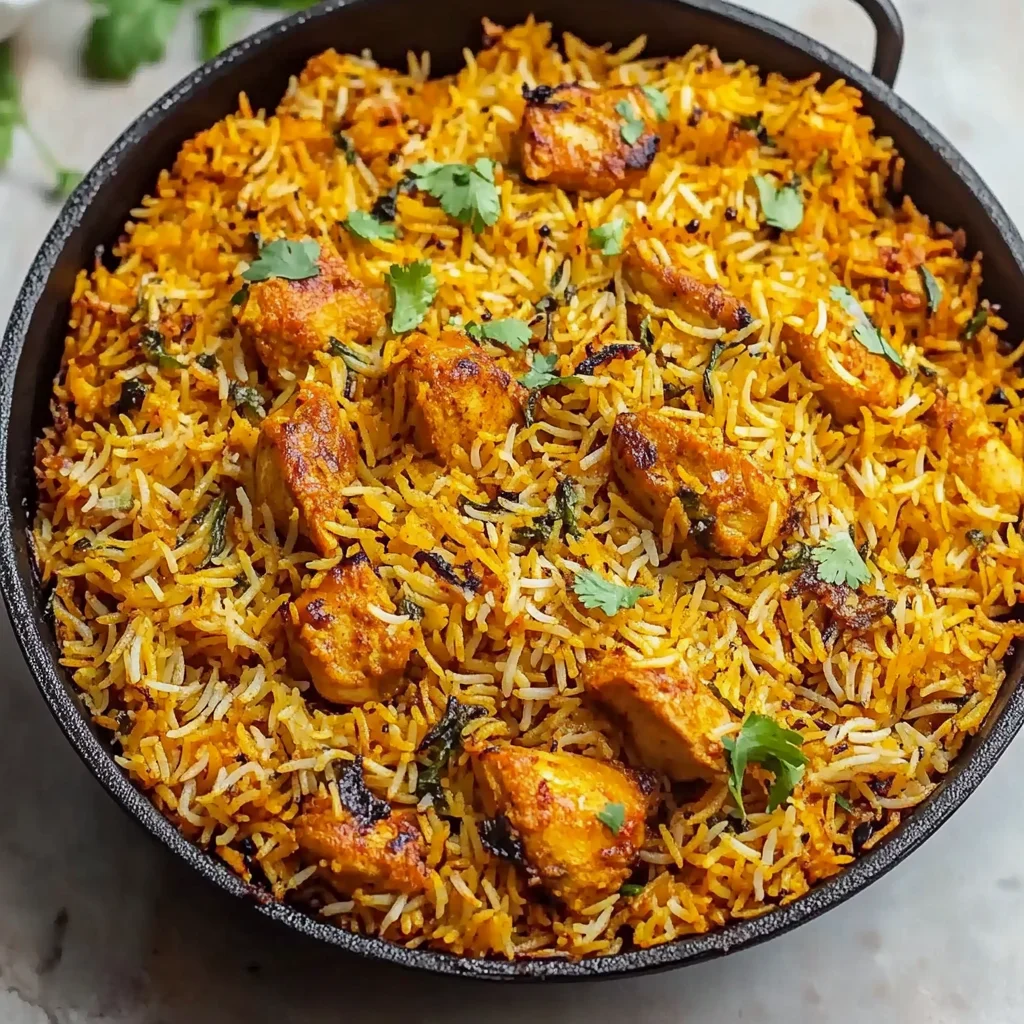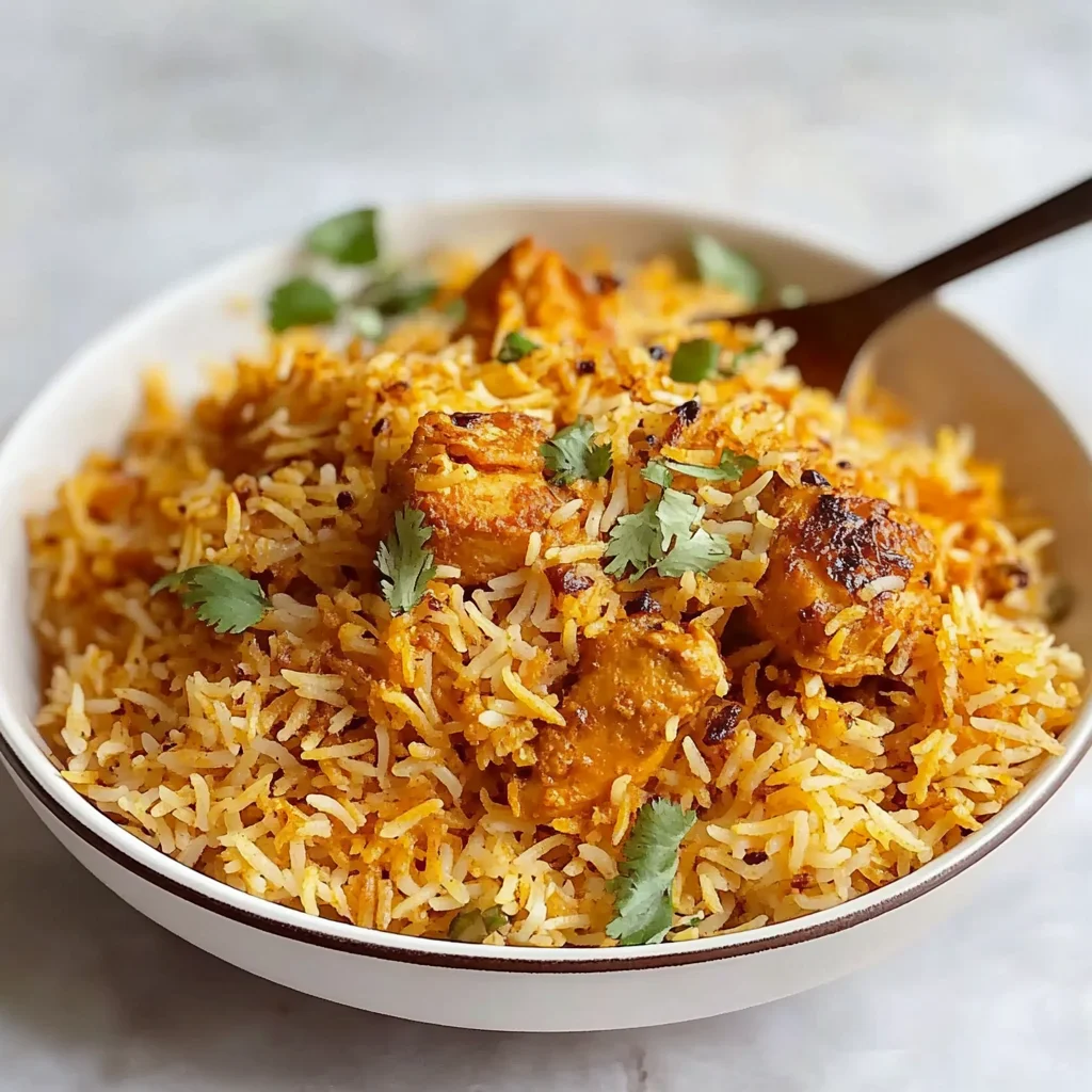 Fragrant Butter Chicken Biryani is a rich and flavorful dish combining marinated chicken and aromatic basmati rice.