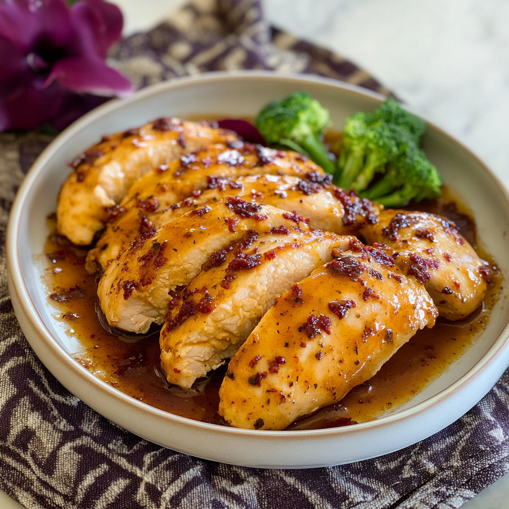 Pop your baking dish into the preheated oven. Bake for about 25-30 minutes or until the chicken is cooked through (165°F internal temperature), basting with leftover sauce halfway through.