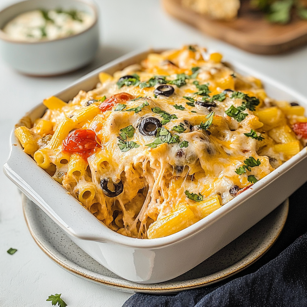 In summary, Mexican Chicken Pasta Casserole offers an easy yet flavorful way to bring family and friends together for dinner. This dish combines chicken, pasta, and classic Mexican spices into one comforting meal that’s quick to prepare and deliciously satisfying. Whether you stick to the traditional recipe or customize it to your liking, you can’t go wrong with this crowd-pleaser. So next time you’re looking for a hearty dinner option, remember this tasty Mexican Chicken Pasta Casserole!