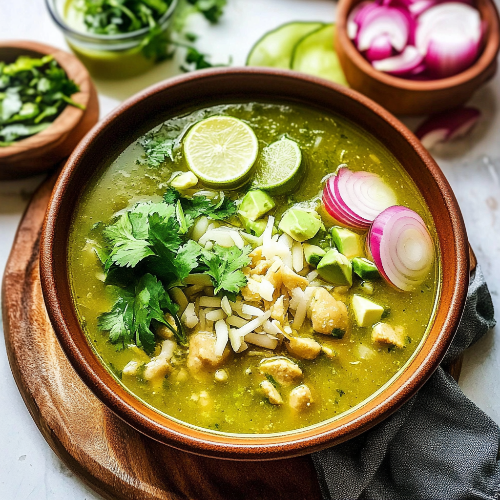 Pozole Verde is a vibrant and flavorful Mexican soup that combines tender pork, fresh tomatillos, and zesty herbs for a heartwarming dish. This easy-to-make recipe features hominy and an explosion of flavors that create a comforting experience perfect for family gatherings or cozy nights in. With its bright green color and delightful toppings, Pozole Verde is not just food; it’s a celebration in a bowl.